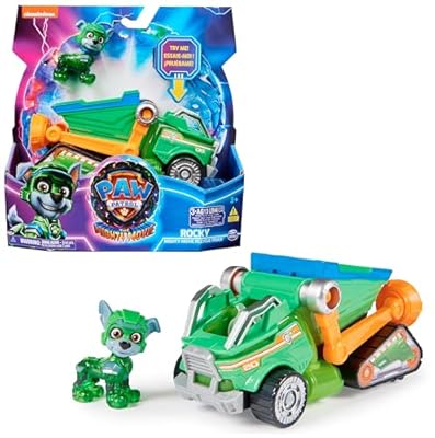 🇪🇸 Paw Patrol Patrulla Canina - Figura Rocky y Camión de Reciclaje con Luces y Sonidos de La Superpelícula - 6067508 - Juguetes Niños 3 Años+ - Regalo Niño 3 Años +