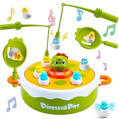 Aischens 4 en 1 Juego de Pesca para Niños Juegos Pescar Peces con Música Dinosaurio Juego de Pesca Magnético Juguete de Pescar Montessori Juguetes Educativos Interactivos Regalos Niños 3-6 Años
