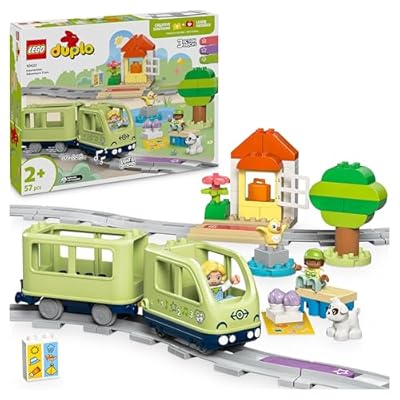 LEGO Duplo Mi Ciudad Aventura Ferroviaria Interactiva - Juguete Educativo para Niños y Niñas de 2+ Años - 14 Piezas de Vías Ladrillo con Luces y Sonido y 4 Figuras - Regalo Infantil 10427