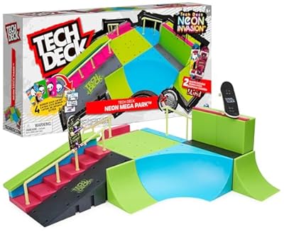 🇪🇸 Tech Deck Neon Skate Park Dedos - Neon Mega Park X-Connect Creator - Juego de Rampas de Skate Personalizable Que Brilla en la Oscuridad con 2 Fingerboards - Juguetes Niños 6 Años +